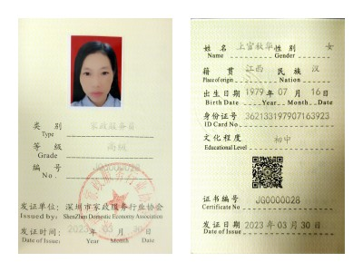 2022年至23023年,在坪山做家政服务师,负责搞卫生做饭